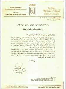 وطالبت المفوضية بحسب الكتاب، المفوضية العليا المستقلة للانتخابات في العراق من رئاسة إقليم كردستان إصدار مرسوم إقليمي يحدد يوم (5 أيلول 2024) موعداً للاقتراع العام في انتخابات برلمان كردستان.