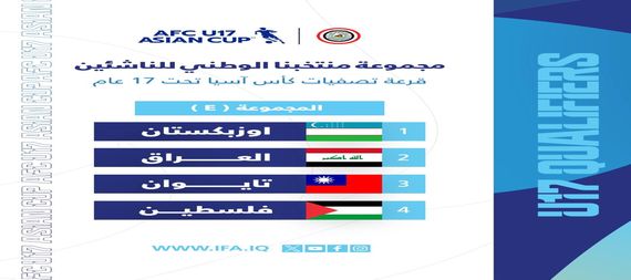 اوقعت قرعة تصفيات كأس آسيا لكرةِ القدم دون 17 عاماً، التي جرت اليوم الخميس في العاصمة الماليزية كوالالمبور، منتخب ناشئة العراق في المجموعة E ( الخامسة ) الى جانب منتخبات اوزبكستان وتايوان وفلسطين.