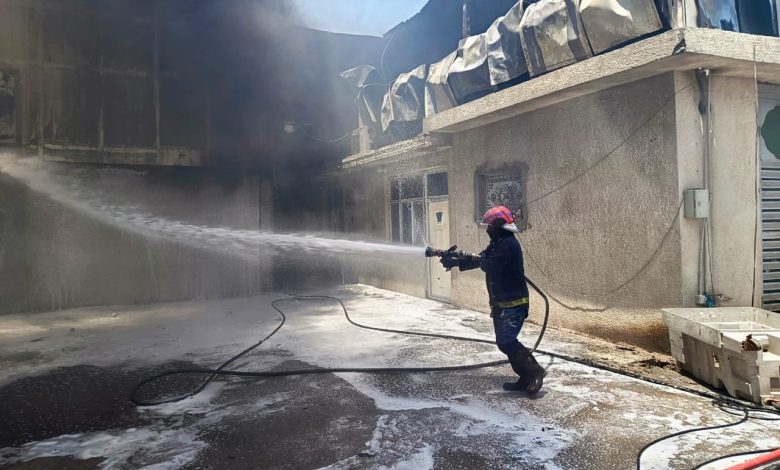الدفاع المدني تكافح حريقا داخل مخازن للمناديل الورقية في منطقة عويريج
