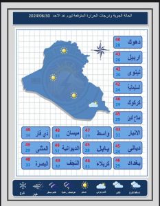 أعلنت الهيئة العامة للأنواء الجوية، اليوم السبت، عن حالة الطقس في مدن البلاد للأيام المقبلة، مشيرة الى ارتفاع غبار خفيف في بعض المناطق فيما توقعت انخفاضا جديدا بدرجات الحرارة بعموم البلاد.