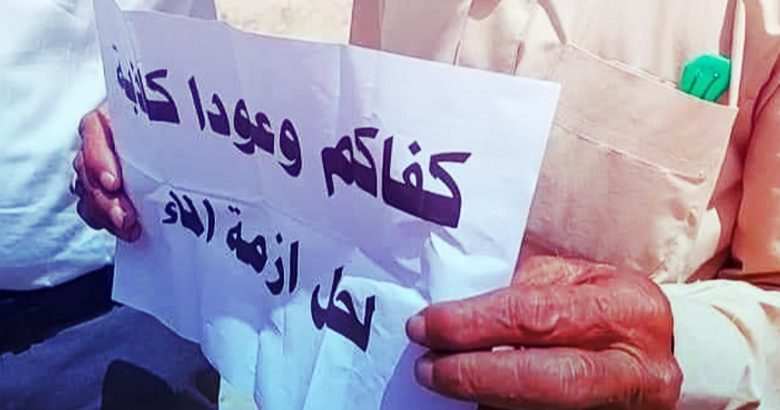 ونظم اهالي منطقة الفيلق وقفة احتجاجية بسبب شح الماء وسط ارتفاع درجات الحرارة الى نحو 50 درجة مئوية مشددين على ضرورة الاسراع في الاستجابة لمطالبهم قبل تحويل الوقفة الاحتجاجية الى اعتصام مفتوح.