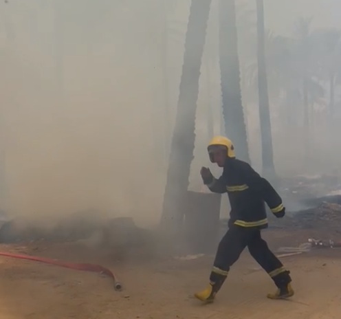 بالفديو…اخماد حريق في بساتين نخيل الحلة