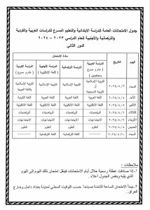 أعلنت وزارة التربية، اليوم الثلاثاء ، جداول الامتحانات الوزارية/ الدور الثاني/ لمراحل (السادس الابتدائي، الثالث المتوسط، السادس الاعدادي) للعام الدراسي 2023-2024.