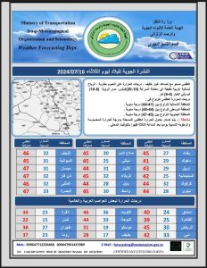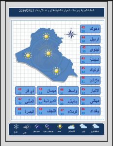 توقعت هيئة الانواء الجوية، اليوم الثلاثاء ، حدوث حالة من الاستقرار النسبي بدرجات الحرارة خلال الأيام المقبلة مع نشاط غباري في بعض مناطق البلاد.