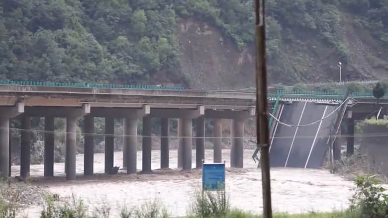 أعلنت السلطات الصينية أن أكثر من 30 شخصا فقدوا إثر انهيار جسر في مقاطعة تشاشوي شمال غربي البلاد. وأكد التلفزيون الرسمي في تقرير أنه في مقاطعة تشاشوي في منطقة شانلو، انهار جسر الطريق السريع نتيجة للأمطار الغزيرة وسقطت العديد من المركبات في النهر
