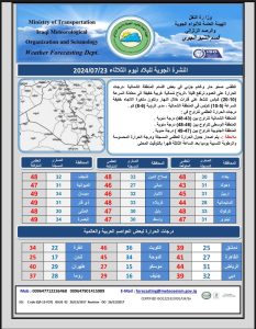 أعلنت هيئة الانواء الجوية، اليوم الاثنين ، عن حالة الطقس خلال الأيام المقبلة، فيما توقعت ان انخفاضا طفيفا في درجات الحرارة نهاية الأسبوع الحالي.