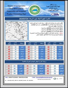 توقعت هيئة الانواء الجوية، اليوم الأربعاء ، تصاعدا للغبار في أجواء العراق بدرجات حرارة اربعينيةخلال الأيام القادمة.