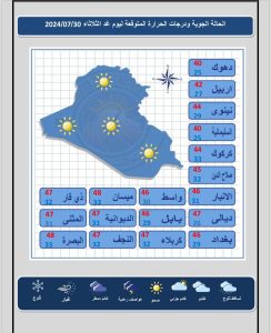 طقس العراق.. ارتفاع طفيف بدرجات الحرارة مع غبار خفيف