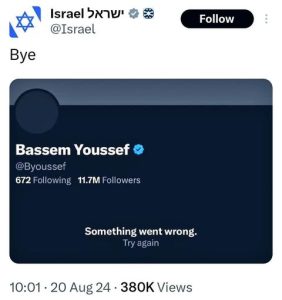 منشور يحرم باسم يوسف من حسابه على منصة “إكس”