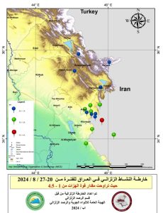 وقال القسم في بيان تلقته “وطن نيوز” ، إنه “سجل عدد من الهزات الارضية للفترة من 20 – 27 آب، في نطاق حلبجة خانقين كلار بلغت 16 هزة على جانبي الحدود العراقية الايرانية تراوحت بين 1 لغاية 4.5 درجة على مقياس ريختر”.