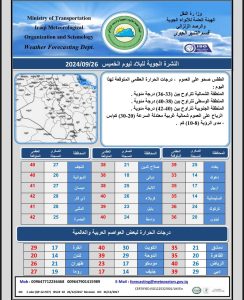أعلنت هيئة الأنواء الجوية، اليوم الخميس حالة الطقس في العراق للأيام الأربعة المقبلة، فيما توقعت أن تشهد مدن البلاد استقرارا بدرجات الحرارة.