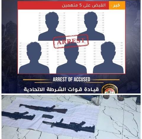 القت قوات الشرطة الاتحادية ،اليوم السبت، القبض على 5 متهمين بالاعتداء على احد منافذ الصيرفة في العاصمة بغداد .وذكرت قيادة الشرطة الاتحادية في بيان ، انه :” اثر خلاف حول مبلغ مالي ومشاجرة في “حي سومر” في العاصمة بغداد ،أدت إلى إصابة صاحب مكتب صيرفة وأخوته بإطلاق نار وطعنات بآلات حادة، تم تشكيل فريق أمني بإشراف قائد الفرقة الخامسة في الشرطة الاتحادية وبالتنسيق مع القطعات الأمنية والاستخبارية الملحقة ، وبعد التحري والتفتيش وجمع المعلومات وتوسيع دائرة البحث ، تم الوصول الى الجناة ( 5 متهمين) وإلقاء القبض عليهم في مدينة الصدر شرقي بغداد”.واضافت :” ضبطت بحوزة المتهمين ( بندقيتان نوع M4 ، وبندقية كلاشنكوف) ، و تم إحالتهم الى الجهات المختصة “.