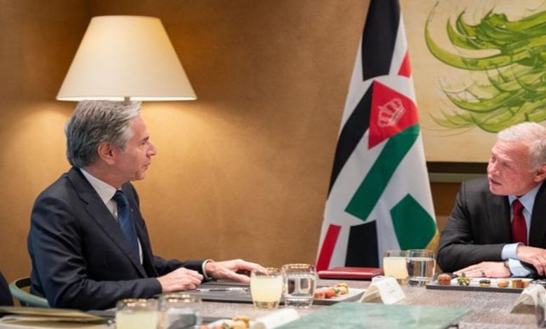 أكد ملك الأردن عبدالله الثاني، لدى لقائه وزير الخارجية الأمريكي أنتوني بلينكن، أن الخطوة الأولى لتحقيق تهدئة شاملة بالمنطقة هي وقف الحرب الإسرائيلية على غزة. وقال الملك في اللقاء الذي عقد بالعقبة إن تحقيق هذه الخطوة يستدعي تحركا دوليا فوريا وجادا. وتطرق اللقاء إلى المساعي المبذولة لتعزيز الاستجابة الإنسانية في غزة. وعلى صعيد التطورات في سوريا، جدد الملك عبدالله التأكيد على احترام الأردن لخيارات الشعب السوري، والحفاظ في الوقت ذاته على أمن سوريا وسلامة مواطنيها.وفي معرض الحديث عن الأوضاع بالضفة الغربية، حذر الملك من خطورة الإجراءات الإسرائيلية أحادية الجانب، والاعتداءات المستمرة على المقدسات الإسلامية والمسيحية في القدس.وجدد التأكيد على أن حل الدولتين هو السبيل الوحيد لتحقيق السلام العادل والشامل، ومنع انجرار المنطقة نحو المزيد من الصراعات، مشددا على الدور المحوري للولايات المتحدة في استعادة الاستقرار بالإقليم.