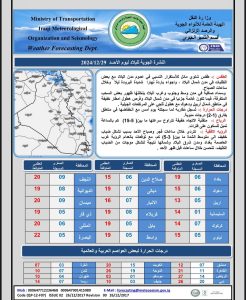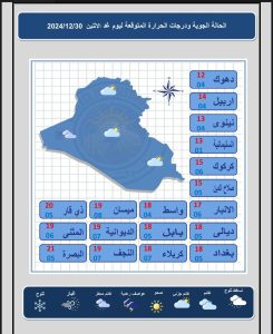 أعلنت هيئة الانواء الجوية، اليوم الأحد ، عن حالة الطقس في العراق خلال الأيام المقبلة، فيما توقعت أن يكون هناك امطار وغيوم وتذبذب في درجات الحرارة.
