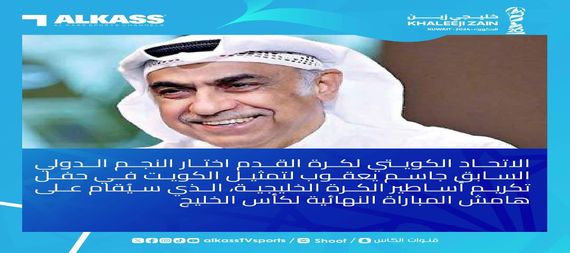 اعلن الاتحاد الكويتي لكرة القدم، اختياره نجم الخليج والعرب ” جاسم يعقوب ” لتمثيل الكويت في حفل تكريم اساطير الخليج ، في نهائي بطولة كأس الخليج العربي لكرة القدم ” خليجي 26 “.