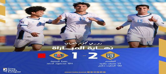 واصل فريق القاسم نتائجه الطيبة بفوزه مساء اليوم السبت على فريق نفط البصرة بهدفين مقابل هدف ضمن منافسات الجولة ١٦ من دوري نجوم العراق.وتقدم القاسم بواسطة لاعبه سيف رشيد عند الدقيقة ٢٣ وعزز النتيجة بهدف ثان عن طريق اللاعب الحارث حاتم في الدقيقة ٣٠ بينما سجل هدف نفط البصرة الوحيد اللاعب محمد احمد في الدقي ٨٤.ورفع القاسم رصيده الى النقطة ٢٤ في المركز الثامن بينما تجمد رصيد نفط البصرة عند النقطة ١٤بالمركز الثامن عشر.
