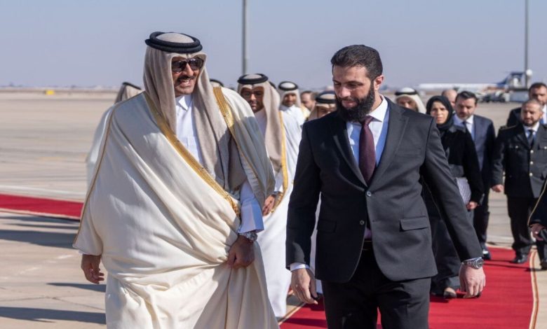وصل أمير دولة قطر الشيخ تميم بن حمد آل ثاني إلى العاصمة دمشق، في أول زيارة لزعيم عربي إلى سوريا منذ سقوط حكم بشارالأسد وتسلم أحمد الشرع رئاسة سوريا لمرحلة انتقالية. واستقبل الرئيس السوري أحمد الشرع أمير دولة قطر الشيخ تميم بن حمد آل ثاني في مطار دمشق الدولي بحضور رئيس الحكومة محمد البشير،ووزير الخارجية أسعد الشيباني، ووزير الدفاع اللواء المهندس مرهف أبو قصرة وعدد من المسؤولين وأعضاء السفارة القطرية في دمشق. وأعلنت إدارة العمليات العسكرية في سوريا، أمس الأربعاء، إسناد منصب رئيس البلاد في المرحة الانتقالية إلى أحمد الشرع.ورحّبت وزارة الخارجية القطرية بالخطوات الانتقالية الهادفة إلى تعزيز التوافق الوطني في سوريا.وقالت الخارجية القطرية في بيان، إنّ خطوات الإدارة السورية الجديدة تُمهّد لتوطيد السلم الأهلي والأمن والاستقرار وبناء دولة القانون والمؤسسات والتنمية والازدهار.وشدّدت الوزارة على أنّ المرحلة المفصلية الحالية في سوريا تتطلّب احتكار الدولة للسلاح في جيش واحد يُعبّر عن كافة المكوّنات دون إقصاء، حفاظًا على سيادة البلاد واستقلالها وسلامة أراضيها، ما يُمهّد لانتقال سلمي للسلطة من خلال عملية سياسية شاملة.وفي إطار دعمها للشعب السوري، تواصل الدوحة إرسال المساعدات الإغاثية العاجلة إلى دمشق منذ سقوط نظام الرئيس بشار الأسد.