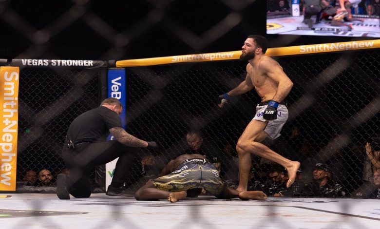 ألحق الفرنسي نصر الدين إيمافوف هزيمة ساحقة بالنيوزيلندي إسرائيل أديسانيا في النزال الذي جمعهما مساء أمس السبت، ضمن بطولة “UFC Fight Night 250” للفنون القتالية المختلطة “MMA”. وتمكن المقاتل الفرنسي المنحدر من جمهورية داغستان الروسية الملقب بـ”القناص” من إسقاط متحديه إسرائيل الملقب بـ”The Last Stylebender” والمنحدر من أصول نيجيرية، بالضربة القاضية في الجولة الثانية للنزال الذي جمعهما بالعاصمة السعودية الرياض. وحقق نصر الدين إيمافوف (29 عاما) بذلك انتصاره الخامس عشر خلال مسيرته الاحترافية حتى الآن، مقابل أربع هزائم وتعادل واحد.بينما مني أديسانيا إسرائيل (35 عاما) بالهزيمة الخامسة خلال مسيرته الاحترافية حتى الآن، مقابل 24 فوزا.