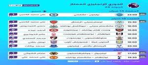 ننشر جدول مباريات الدوريات الاوروبية الكبرى ، الانكليزي و الاسباني والفرنسي والالماني، هذا اليوم السبت ، ابرزها اوساسونا ضد ريال مدريد في الدوري الاسباني ، وليستر ستي ضد ارسنال وماتشستر ستي ضد نيوكاسل يونايتد ، في الدوري الانكليزي ، وتولوز ضد باريس سان جيرمان في الدوري الفرنسي ، وباير ليفركوزن ضد بايرن ميونيخ في الدوري الالماني”.