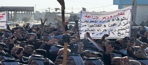 تطاهر المئات من فلاحي ومزارعي محافظات النجف والديوانية والسماوة في مفرق ناحية غماس- وهو مفترق الطرق بين المحافظات الثلاثة- موجهين حزمة من المطالبات إلى وزارة الزراعة والحكومة والى رئيس الوزراء شخصيا.