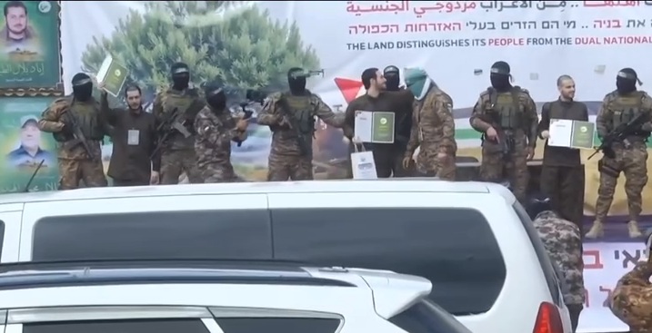 أقدم أحد الأسرى الإسرائيليين الثلاثة الذين أفرجت عنهم حماس اليوم السبت بإطار الدفعة السابعة من صفقة التبادل عل تقبيل رؤوس عناصر من كتائب القسام كانوا يرافقونه، في خطوة لافتة.