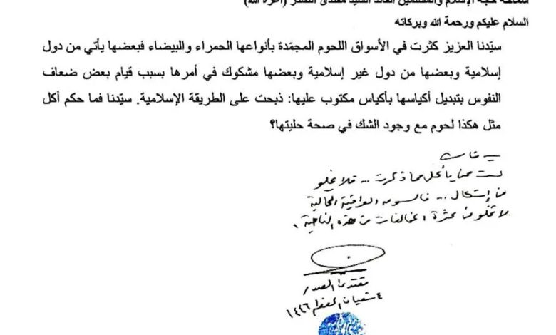رد زعيم التيار الوطني الشيعي، مقتدى الصدر، اليوم السبت، بشأن على سؤال موجه له من احد اتباعه بخصوص اللحوم المجمدة بالأسواق العراقية.ورد الصدر”لست ممن يأكل مما ذكرت”..