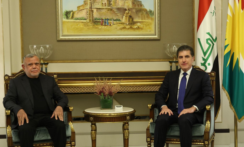 بارزاني والعامري يؤكدان على حل القضايا العالقة بـ”التعاون والتكاتف الوطني”