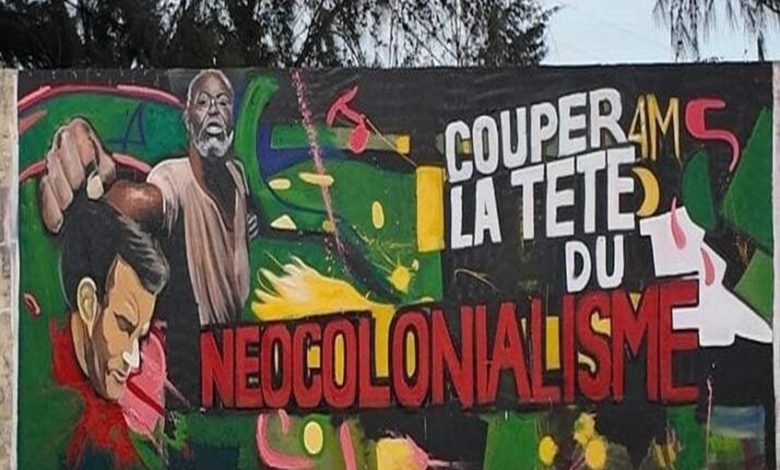 وقد قام الرسام بهذا العمل الجداري الذي يبلغ طوله 3 أمتار وعرضه 7 أمتار في داكار ويحمل عنوان “قطع رأس الاستعمار الجديد”.