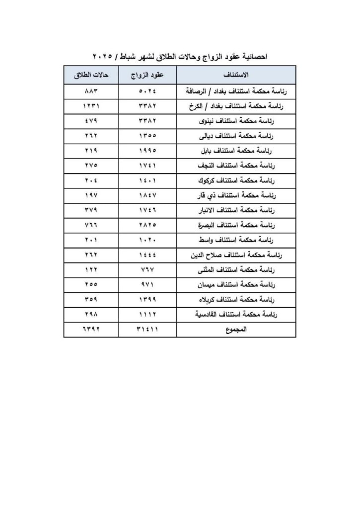 إحصائية: أكثر من 6 آلاف حالة طلاق خلال شهر في العراق