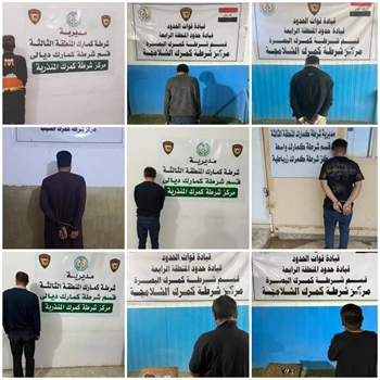 أعلنت قيادة قوات الحدود، اليوم السبت، القبض على (10) متهمين بحوزتهم مواد مخدرة في البصرة وديالى وواسط وميسان.