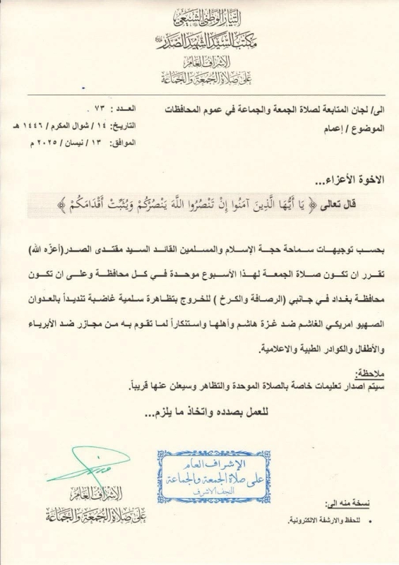 الرئيسية/اخبـار العراق/بالوثيقة.. مكتب الصدر يعلن عن تحضيراته لإقامة صلاة الجمعة وتظاهرة سلمية تنديداً بالعدوان الصهيوامريكي على غزة اخبـار العراق بالوثيقة.. مكتب الصدر يعلن عن تحضيراته لإقامة صلاة الجمعة وتظاهرة سلمية تنديداً بالعدوان الصهيوامريكي على غزة 2025-04-13 28 2025-04-13 28 شاركها فيسبوك X لينكدإن Tumblr بينتيريست Reddit VKontakte Odnoklassniki Pocket مشاركة عبر البريد طباعة