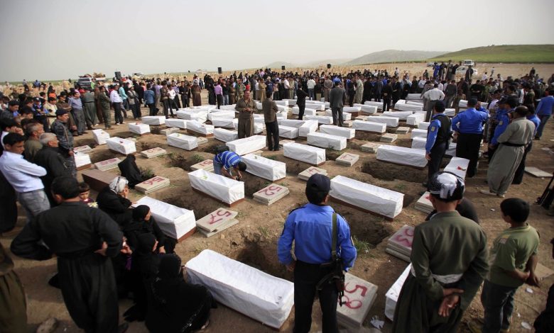 وأشار إلى أنه “تم فتح 31 مقبرة جماعية خاصة بضحايا حملة الأنفال التي نفذها نظام البعث ضد الشعب الكردي واستُخرج منها رفات 1700 شهيد منذ بداية عام 2008 وتم نقلهم إلى دائرة الطب العدلي في بغداد واخذ عينات الـدم من عائلاتهم ومقارنتها بالعينات المأخوذة من عظام رفات المقابر الجماعية للتعرف على هويات الضحايا وتسليمهم إلى ذويهم”.