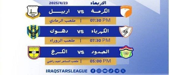 ابرز مباريات دوري نجوم العراق مساء اليوم