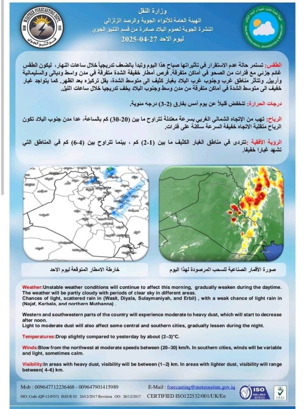 طقس العراق .. غائم جزئي مع غبار خفيف وانخفاض بدرجات الحرارة