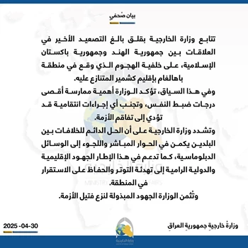 الرئيسية/اخبـار العراق/العراق يدعو الهند وباكستان إلى ضبط النفس وتجنب أي إجراءات انتقامية اخبـار العراق العراق يدعو الهند وباكستان إلى ضبط النفس وتجنب أي إجراءات انتقامية 2025-04-30 52 2025-04-30 52 شاركها فيسبوك X لينكدإن Tumblr بينتيريست Reddit VKontakte Odnoklassniki Pocket مشاركة عبر البريد طباعة