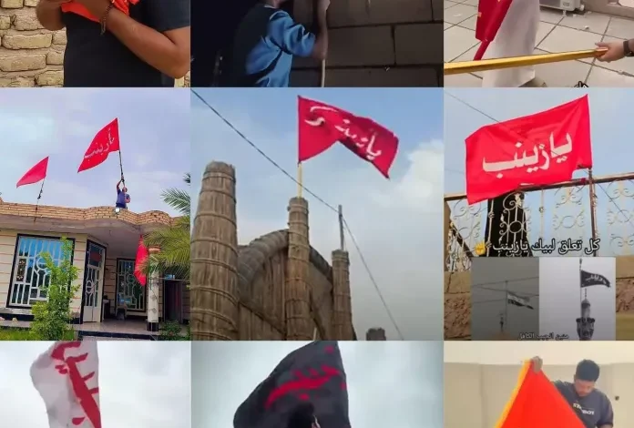 حملة أطلقها العراقيون، لرفع راية “الثأر” للسيدة زينب عليها السلام، فوق المنازل والمضايف والمواكب، في خطوة تأتي ردّاً على ما فعله “مسلحو الجولاني” حين أمروا بإنزال الراية ووصفوها بأنها “طائفية”.