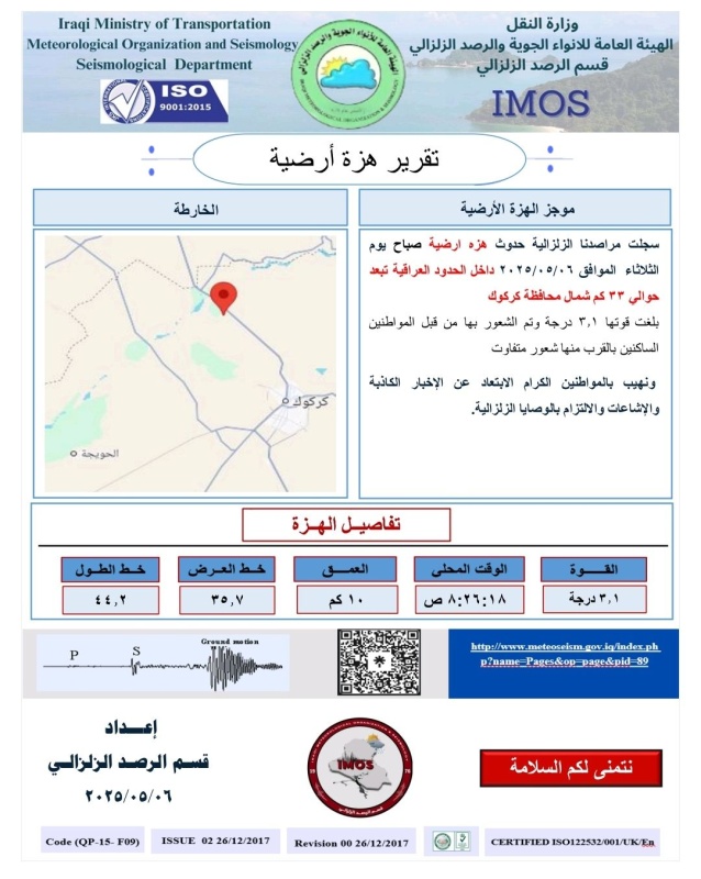 تفاصيل الهزة الأرضية في التقرير أدناه: