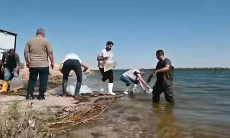 الأنبار : إطلاق 10 ملايين يرقة من سمك الكارب في بحيرة عنه