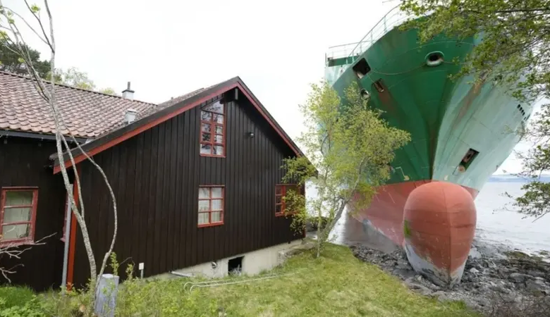 ففي ساعات الصباح الأولى، جنحت سفينة NCL Salten التي كانت تسير بسرعة 16 عقدة (حوالي 30 كيلومتراً في الساعة) في حديقة النرويجي يوهان هيلبيرغ لكنها توقفت على بعد مسافة قليلة من منزله قبل أن تهشمه في بينيست بالقرب من تروندهايم، وفق BBC.