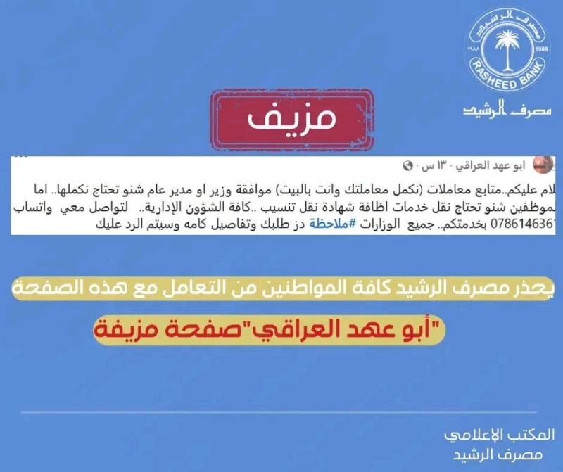 الرئيسية/اخبـار العراق/مصرف الرشيد يحذر من “أبو عهد العراقي” اخبـار العراقالاخبار العاجلة مصرف الرشيد يحذر من “أبو عهد العراقي” 2025-05-26 47 2025-05-26 47 شاركها فيسبوك X لينكدإن Tumblr بينتيريست Reddit VKontakte Odnoklassniki Pocket مشاركة عبر البريد طباعة