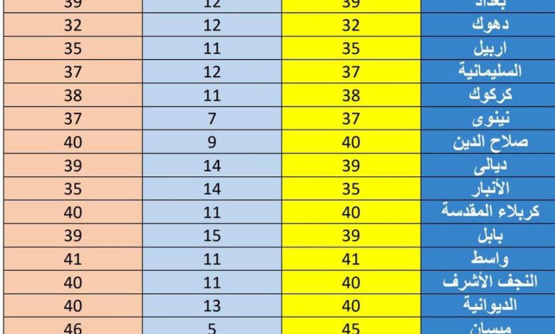 درجات الحرارة: من المتوقع أن يستمر الانخفاض في درجات الحرارة لغاية يوم الجمعة المقبل، قبل أن تبدأ بالارتفاع التدريجي مع مطلع الأسبوع القادم، ضمن نمط موسمي طبيعي يمثل دخول فصل الصيف فعلياً.