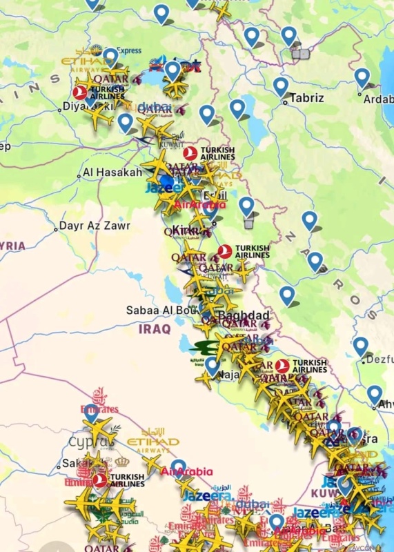 الصورة ادناه توضح حركة الطيران بالاجواء العراقية: