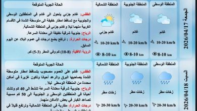 توقعت هيئة الأنواء الجوية، اليوم الأربعاء، تساقطاً للامطار الغزيرة وارتفاعاً في درجات الحرارة بداية الاسبوع…